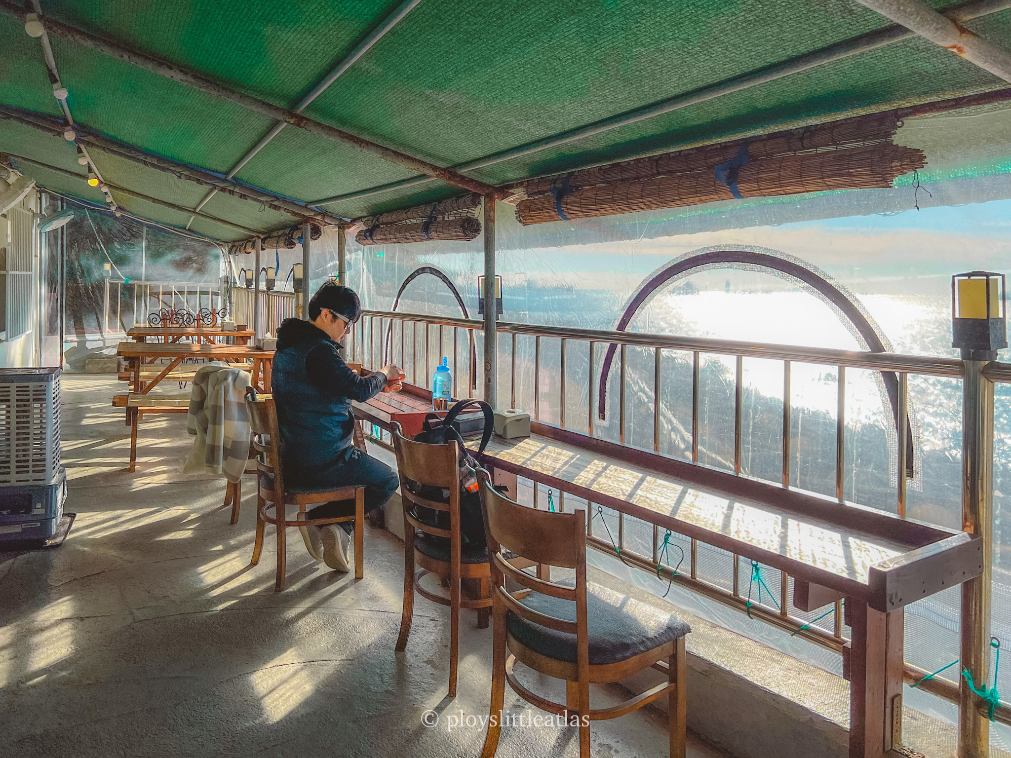 Our visit in early December came with a crisp chill, but the restaurant had thoughtfully enclosed the terrace with clear plastic screens and provided heaters, creating a cozy, wind-proof cocoon. Bundled up in the golden winter sunlight, with the sea sparkling just beyond our table, the atmosphere was nothing short of magical.