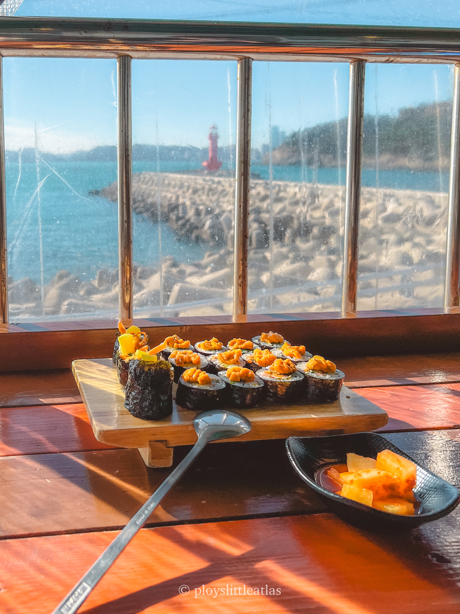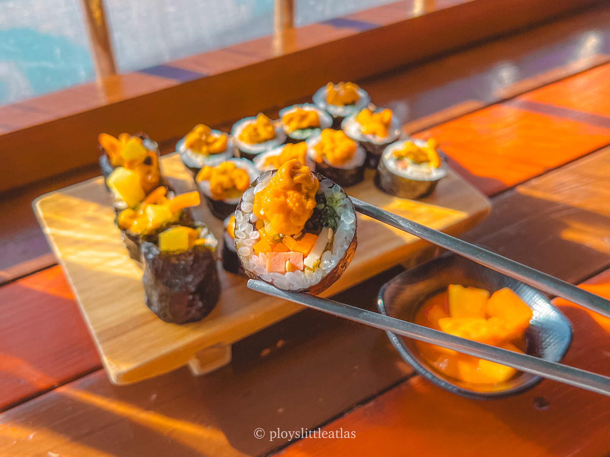 - Uni Kimbap (성게김밥): A decadent treat at 20,000 KRW for two servings.