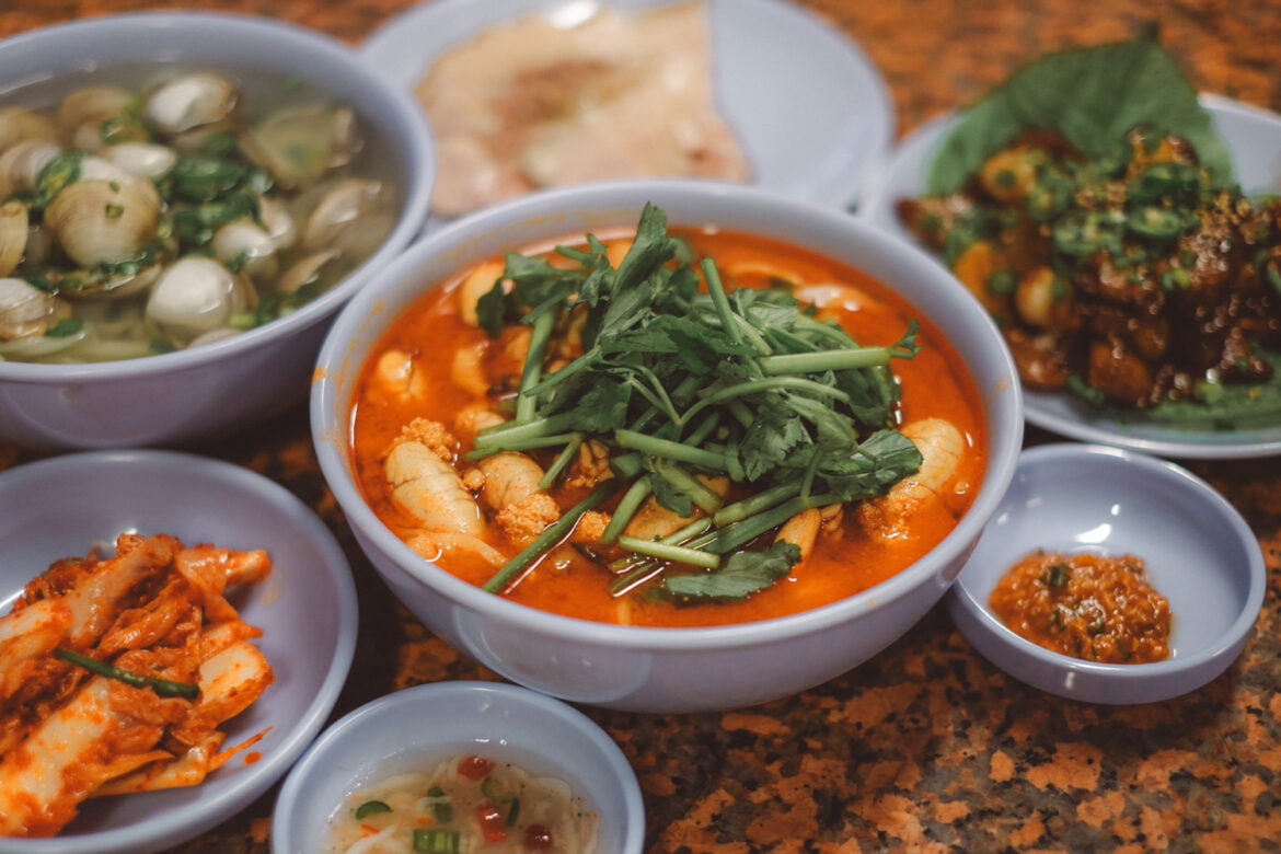 If you’ve tuned into the popular Netflix series “Street Food,” especially the episode featuring Seoul’s renowned Gwangjang Market, the term Kalguksu (칼국수) might sound familiar. This dish is a bowl of noodle soup distinguished by its handcrafted wheat flour noodles, skillfully cut with a knife. The name “Kalguksu” stems from the method of cutting the noodles rather than extruding or spinning them. While the variations of Kalguksu abound, depending on the soft mixed ingredients used for the noodles and the diverse complementary elements in the broth, a prevalent choice at many Kalguksu establishments is haemul kalguksu (해물칼국수), featuring a mild-colored broth adorned with an array of seafood.
