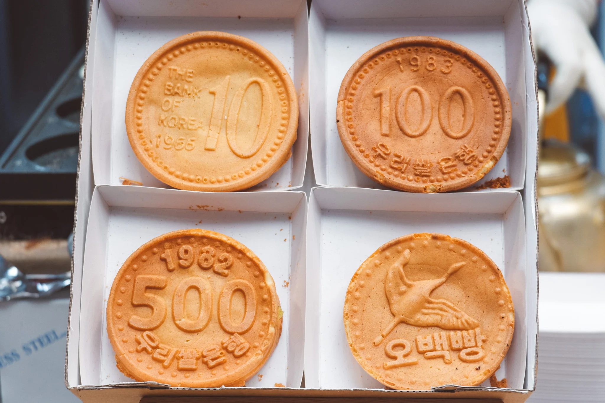 Sib-won ppang, also known as “10 won bread,” is a cheese bread shaped like a 10 won coin. Originally from Gyeongju City, it has recently gained popularity across the country. The traditional design of the bread resembles the ten-won coin that first appeared in 1966. However, today, you’ll find various sib-won ppang brands offering additional options like designs based on 100-won and 500-won coins, adding more visual appeal for those perfect Instagram shots.