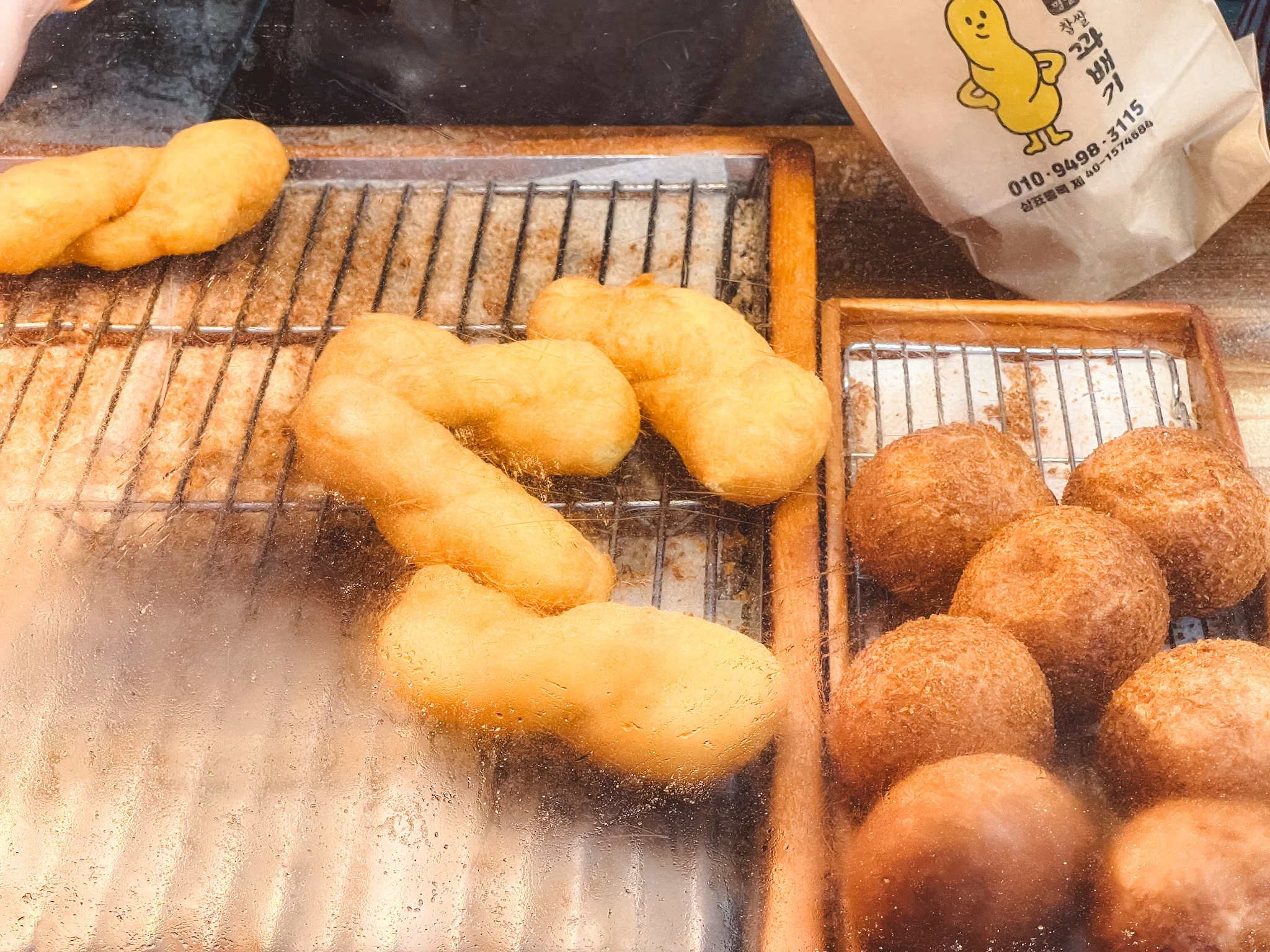Chapssal-kkwabaegi or twisted doughnut, is a beloved snack among Korean students. Surprisingly, Gwangjang Market is home to one of the best chapssal-kkwabaegi you can find. Located near the market entrance at north gate 2, you’ll often see a long line of eager customers waiting patiently. This is a testament to the fame of Gwangjang Market Chapssal-kkwabaegi Shop (광장시장 찹쌀꽈배기), where visitors have raved about the deliciousness of the twisted doughnut. Based on numerous online reviews, the wait is truly worthwhile!