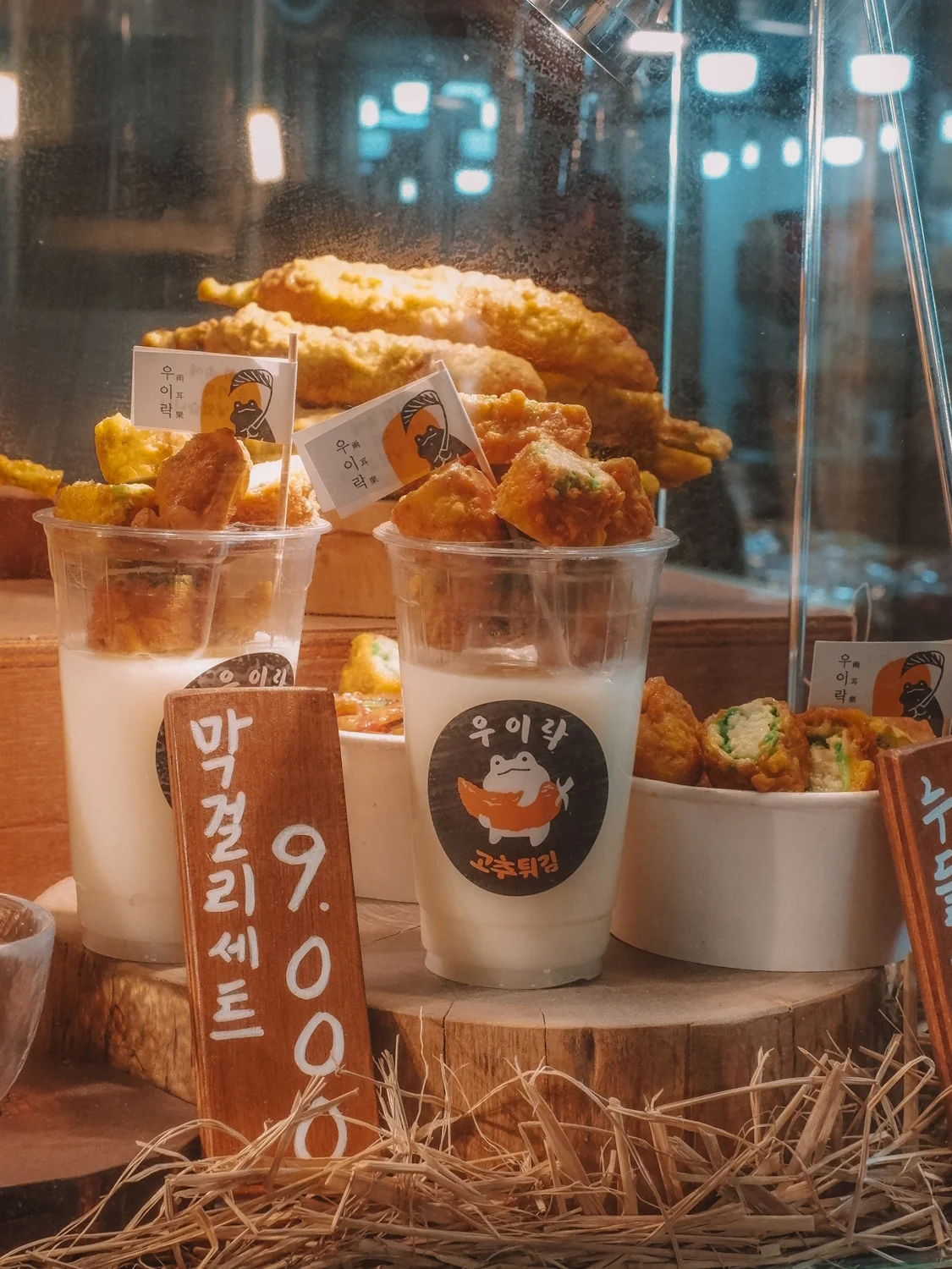 For those intrigued by this unique culinary experience and planning a visit to Gwangjang Market, I highly recommend stopping by Uirak (우이락 광장시장점). Indulge in their convenient and stylish set offering, the Makgeolli Set, which includes 1 Gochu Twigim and a refreshing glass of traditional sparkling rice wine. Priced at 9,000KRW, this set allows you to savor a delightful taste of Korean cuisine paired with a traditional alcoholic beverage—an excellent combination for your culinary adventure!