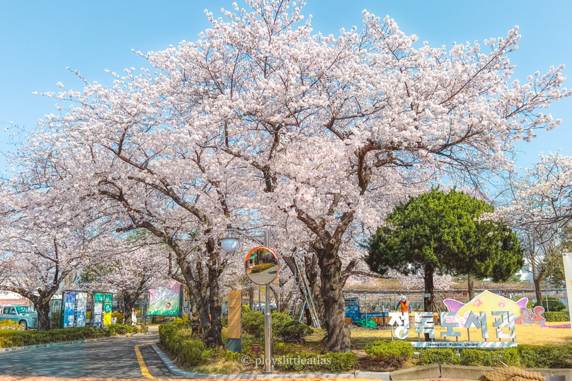 A Serene Spring Escape: Cherry Blossoms at Jeongdok Public Library