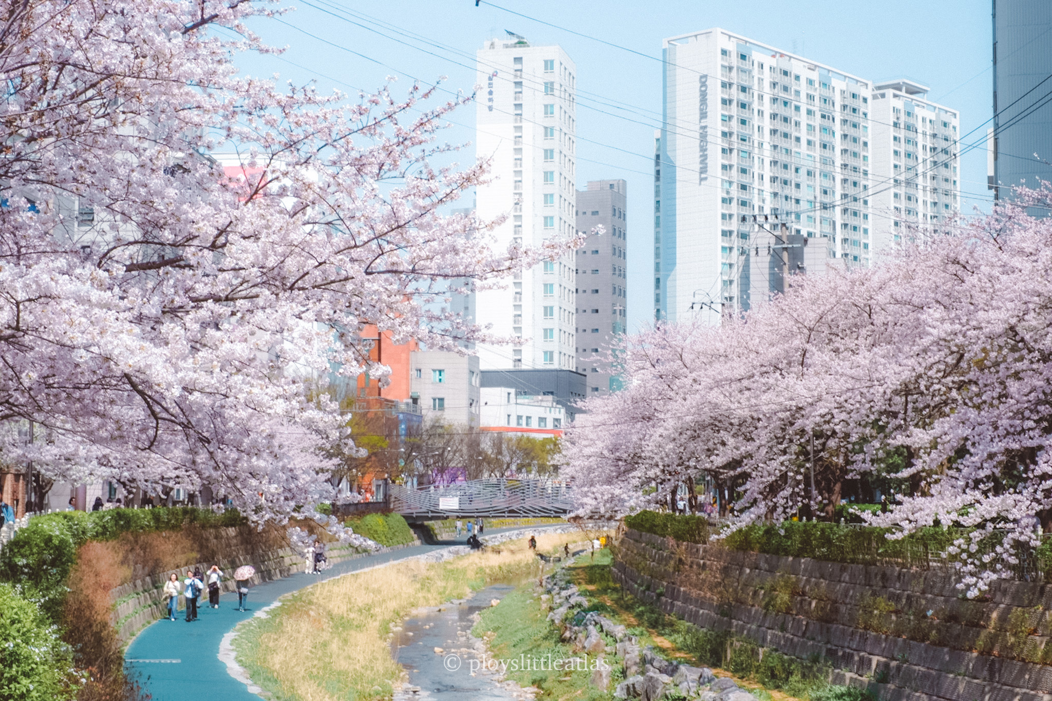 While the stream runs for about 7.7km, there’s one specific section that transforms into a springtime masterpiece: the Seongbukcheon Cherry Blossom Road (성북천 벚꽃길).