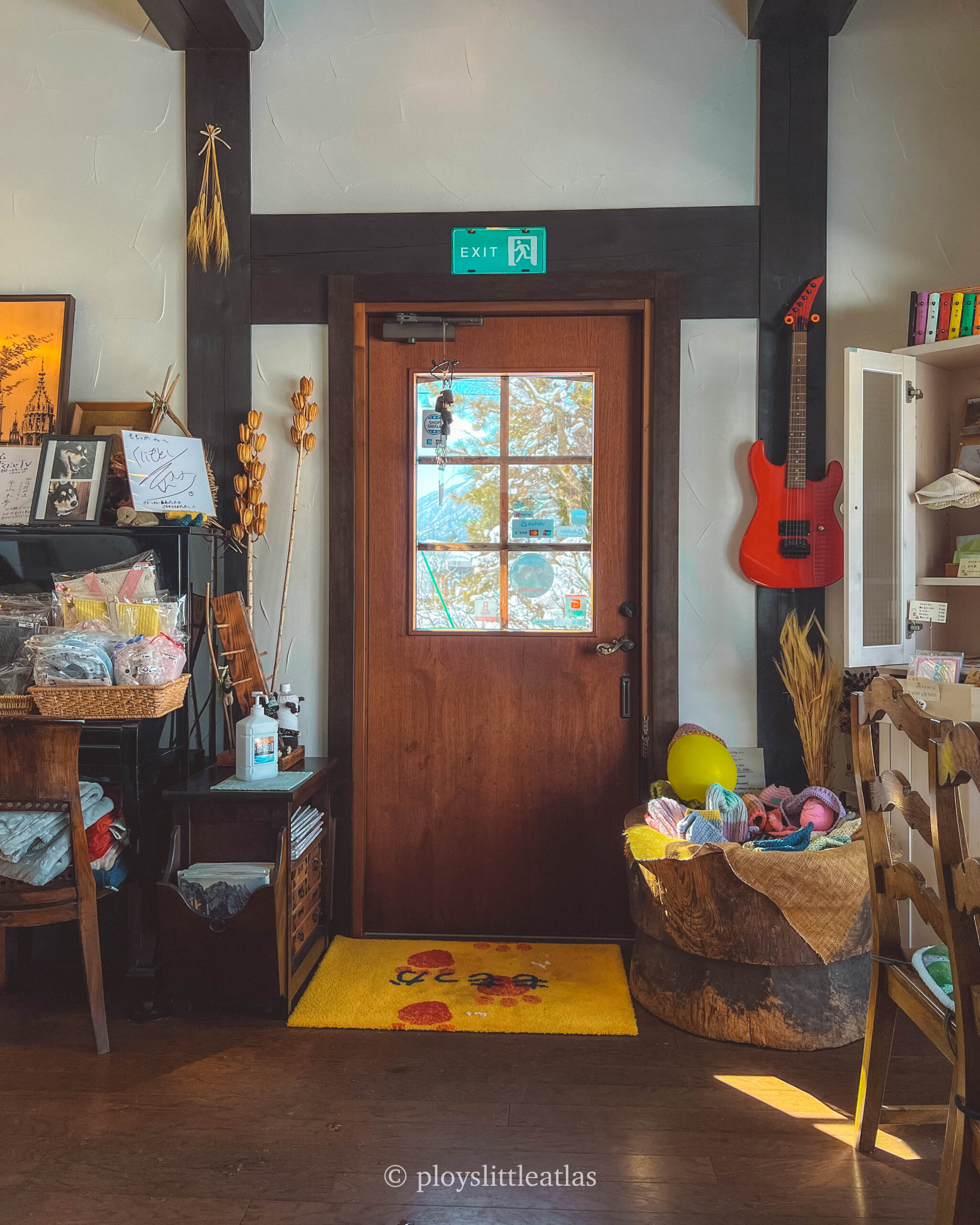 Eclectic Decor: From a vibrant red electric guitar hanging on the wall to delicate dried flowers and a charming painting of a Shiba Inu, the space feels curated, not corporate. It’s personal and full of stories.