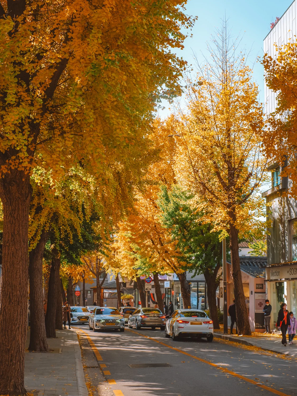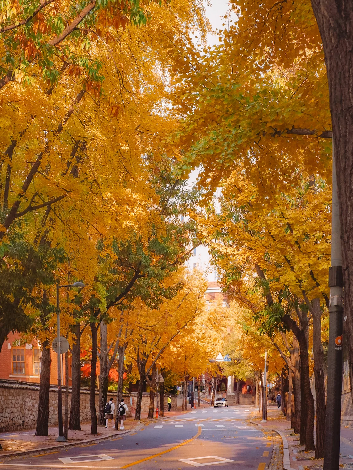 Samcheongdong-gil holds a well-deserved reputation as one of Seoul’s premier spots for witnessing the splendor of autumn foliage. This enchanting road is lined with majestic, mature ginkgo trees, making it a must-visit destination during the peak of the fall season. As nature’s masterpiece unfolds, the ginkgo trees proudly showcase their radiant hues of gold, painting a mesmerizing panorama that encapsulates the very essence of autumn. Exploring Samcheongdong-gil during this time is a true highlight, offering an unforgettable experience that celebrates the beauty of the season.
