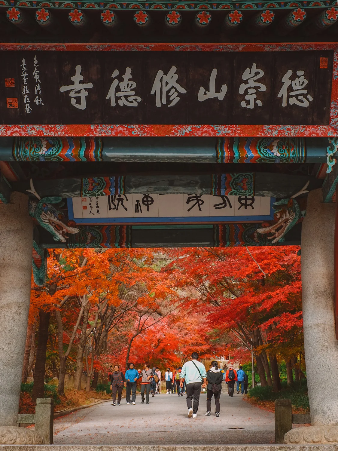Sudeoksa is a mountain temple designated as a UNESCO heritage site. It is located on the southern slopes of Deoksungsan in Yesan County, South Chungcheong Province. Beyond the brilliant sights of Korean traditional architecture and the sanctity of Buddhism, what truly makes Sudeoksa even more mesmerizing is the abundant presence of mature deciduous trees that densely surround the temple grounds, turning it into a haven for fall foliage lovers every autumn. The breathtaking sight of halls adorned in brilliant shades of crimson, orange, and golden yellow creates a remarkable spectacle, making it the perfect place to start your day in awe.