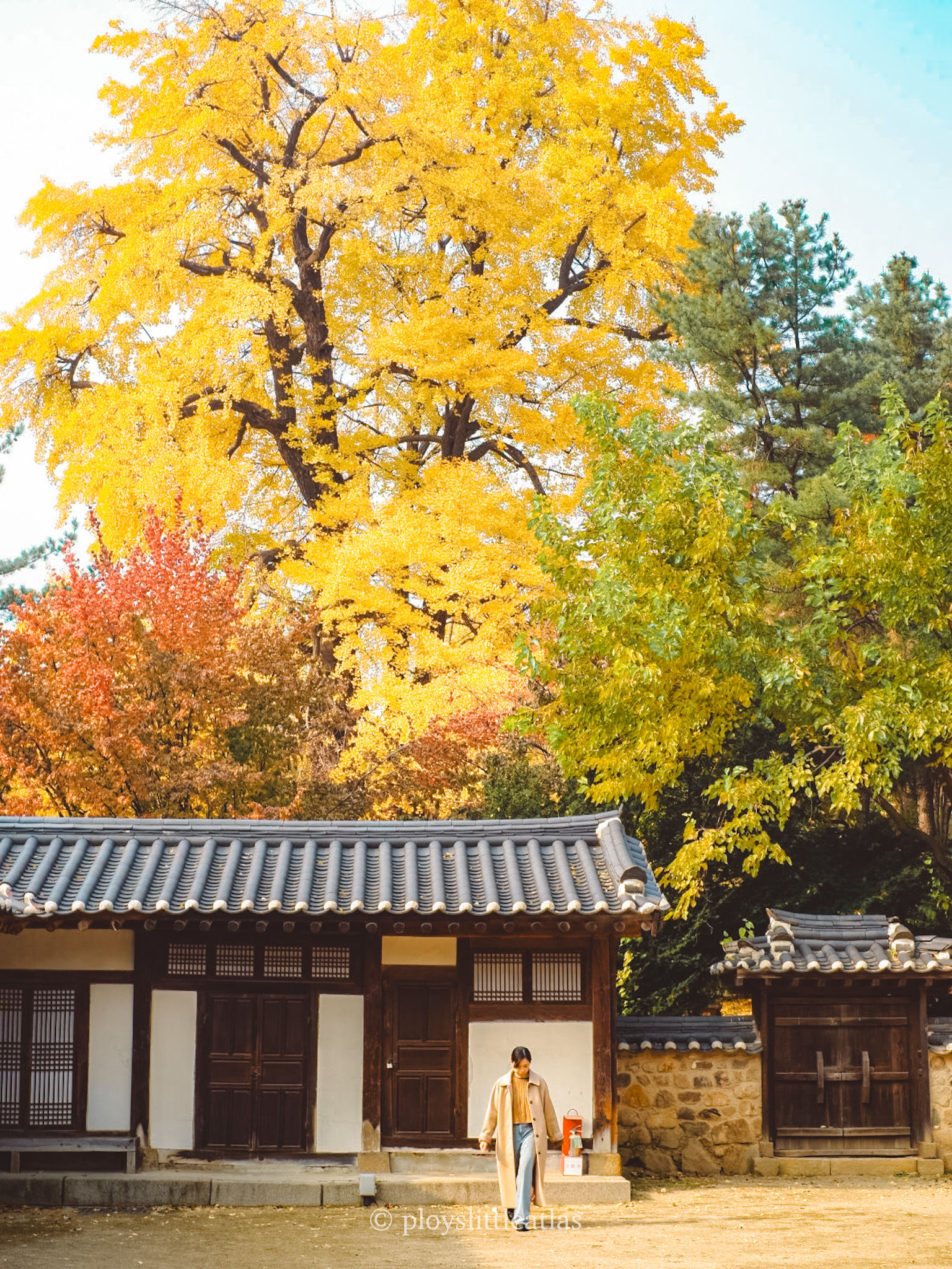 About halfway to the Seongjong Royal Tomb, you’ll find a beautiful traditional Hanok house. While the architecture is intricate, the real showstopper is the 500-year-old ginkgo tree standing majestically beside it. The sheer canopy of brilliant, golden leaves is a heart-melting sight you won’t soon forget.