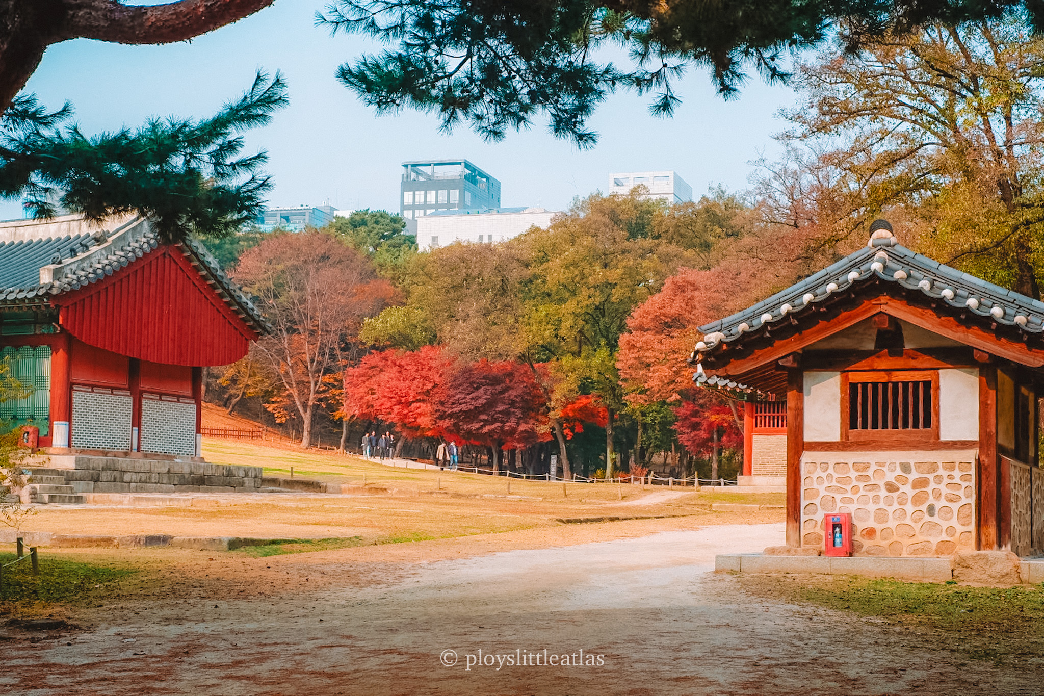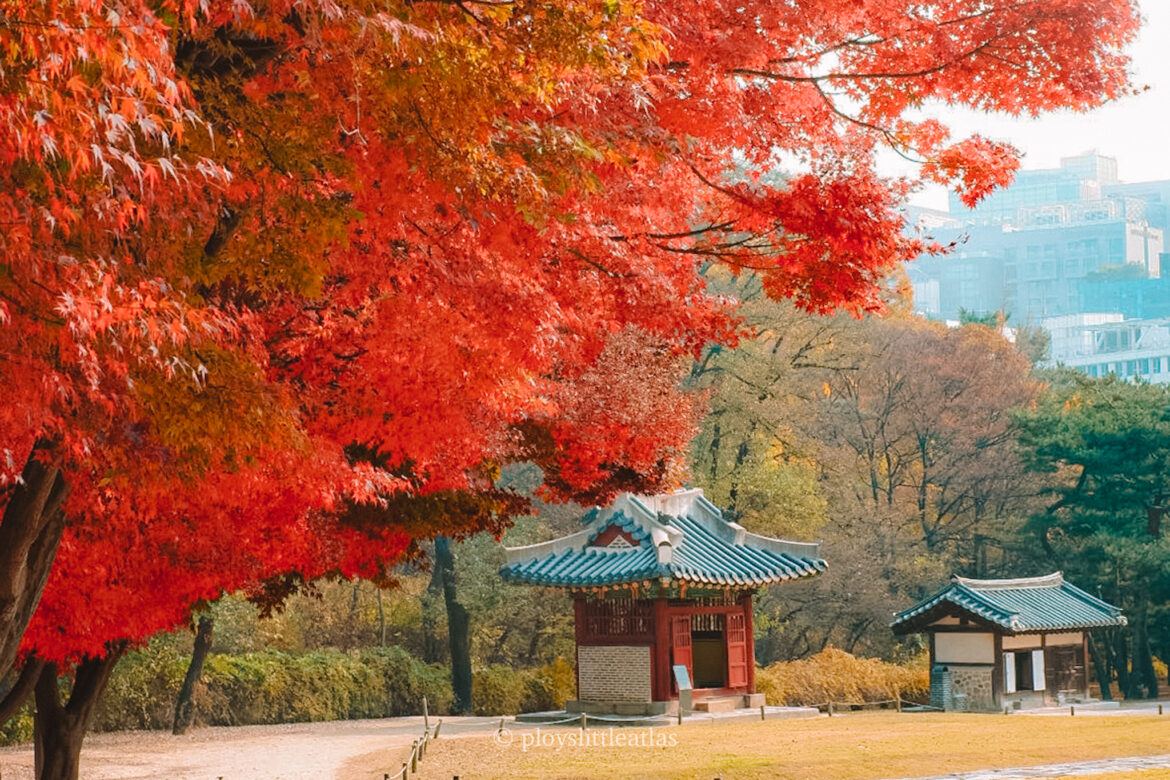 This area is a playground for photographers. A big cluster of maple trees creates a stunning frame of deep red leaves. Aim your camera lens through these fiery branches towards the royal tomb annex or the nearby Hanok hall, and you’ll capture a picture so gorgeous it’s hard to believe you’re in the heart of busy Gangnam.