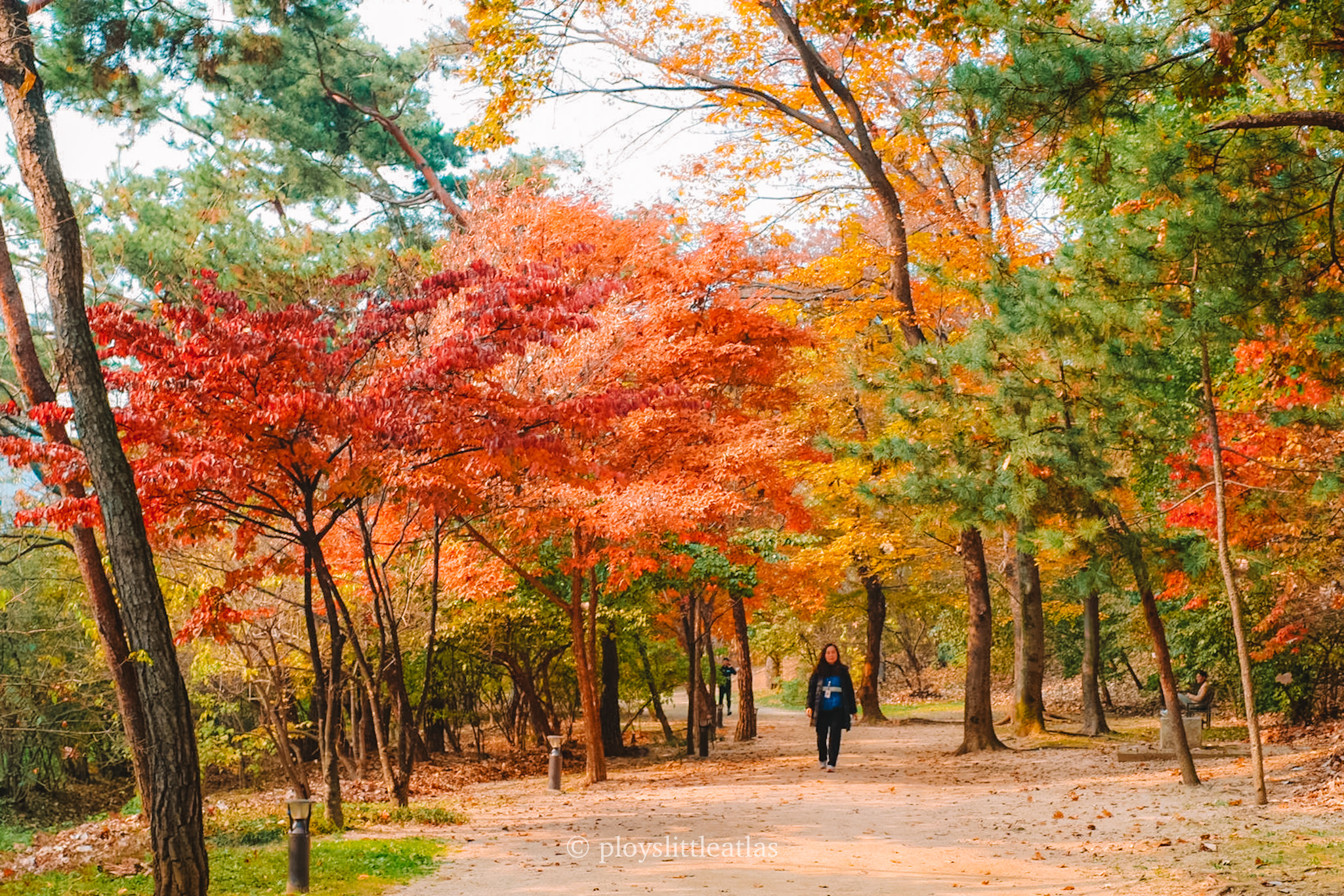 After a prolonged procrastination, I finally checked out Seonjeongneung in Gangnam, and I’m so glad my visit fell on the peak of the autumn season. The scene was a breathtaking explosion of fall color, so magnificent it left me wondering why I hadn’t visited sooner. This unforgettable experience instantly earned Seonjeongneung a top spot on my list of must-visit places for fall foliage sightseeing in Seoul.