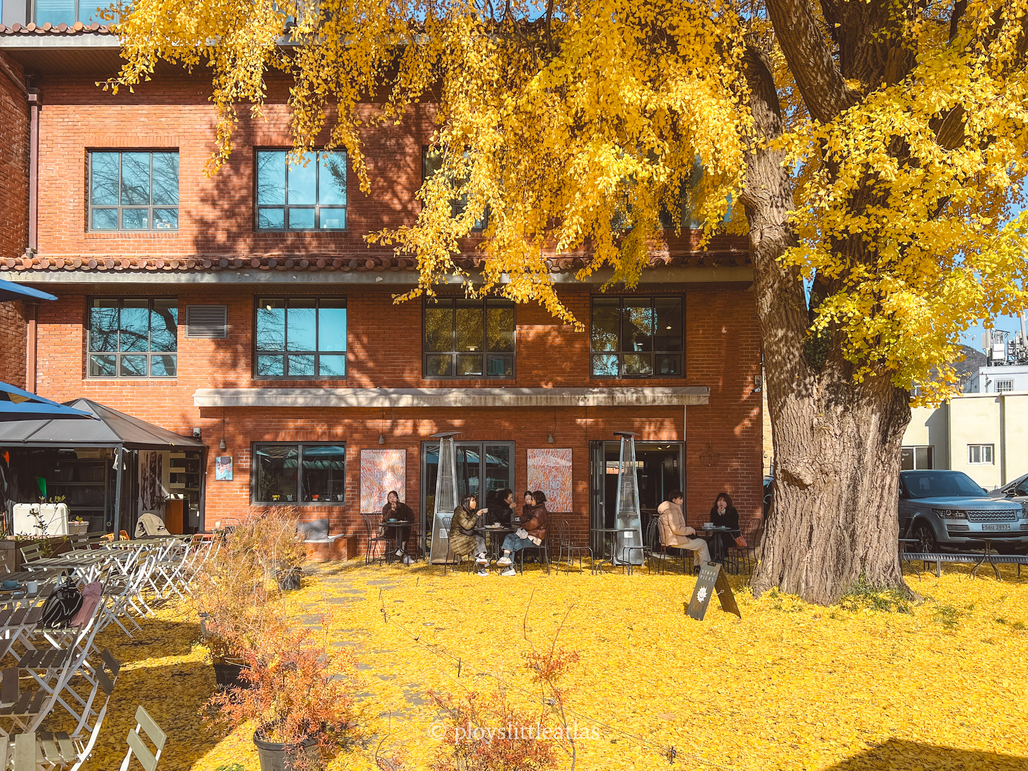 Tucked away in a charming neighborhood near Gyeongbokgung Palace, Staff Picks Cafe is more than just a coffee shop—it’s a destination. While it’s a wonderful spot year-round, it truly achieves iconic status in autumn, becoming a must-visit for locals and travelers alike, all drawn by the magnificent giant ginkgo tree that stands proudly in its front yard.