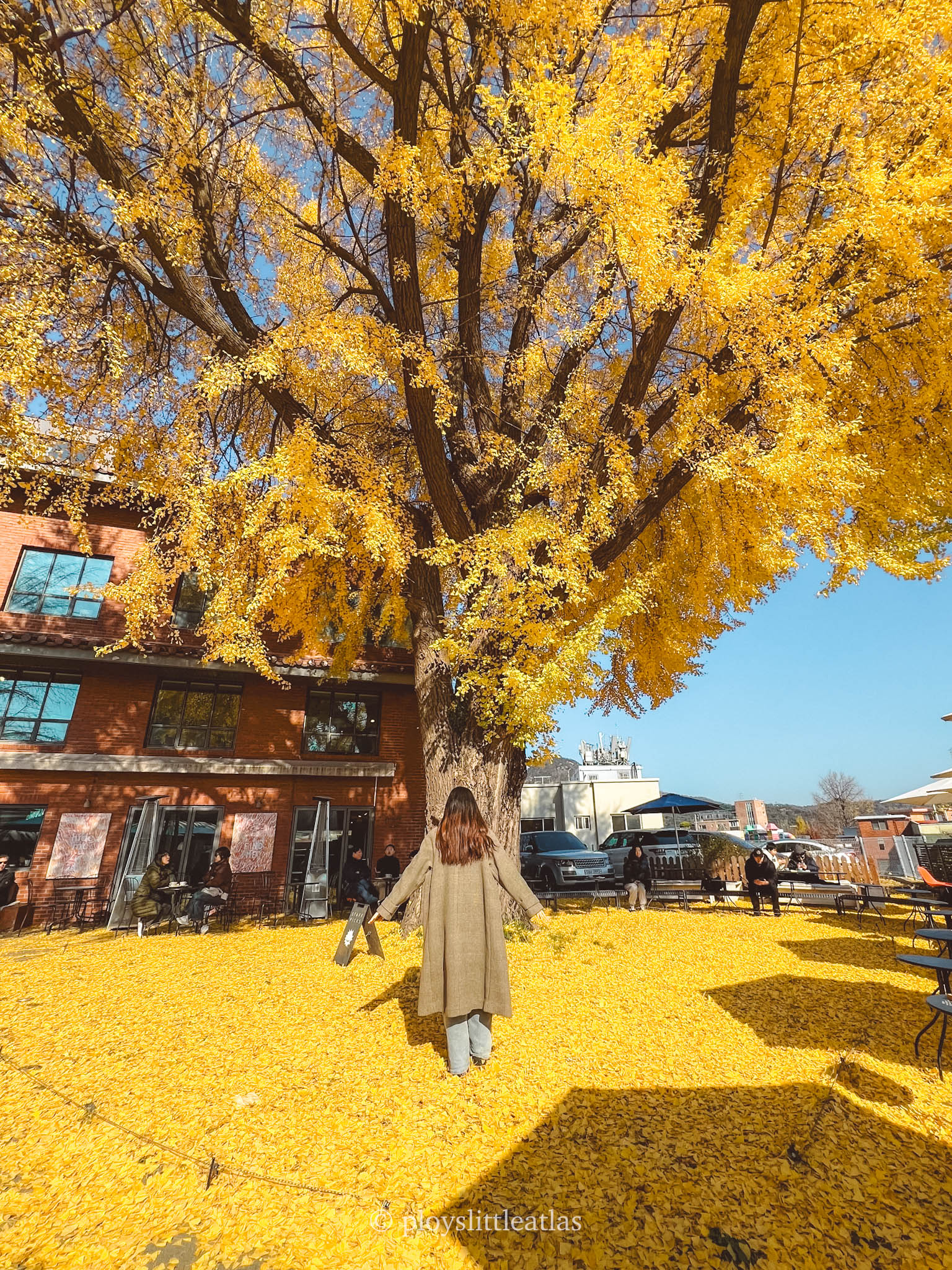 Timing is everything. Based on my observation, the magnificent ginkgo at Staff Picks reaches its peak quite late compared to other foliage spots in Seoul. If you’re hoping to see the stunning golden sights featured in this post, aim for mid-November. My visit was on November 19th, and the tree was an absolute vision.
