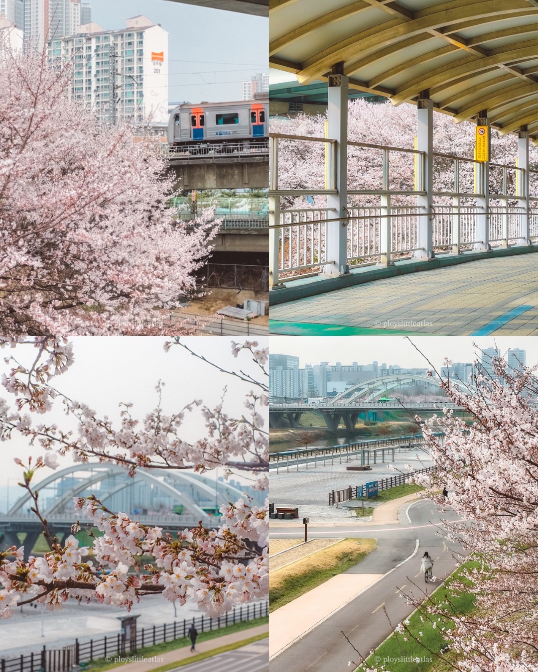 Guil Station is often overlooked in favor of the more famous Yeouido Park, but that is exactly what makes it so special. It offers a more intimate, architectural, and immersive experience. Whether you are a photographer looking for that perfect “train-meets-nature” shot or just someone looking for a peaceful spring stroll, this spot is a must-visit.