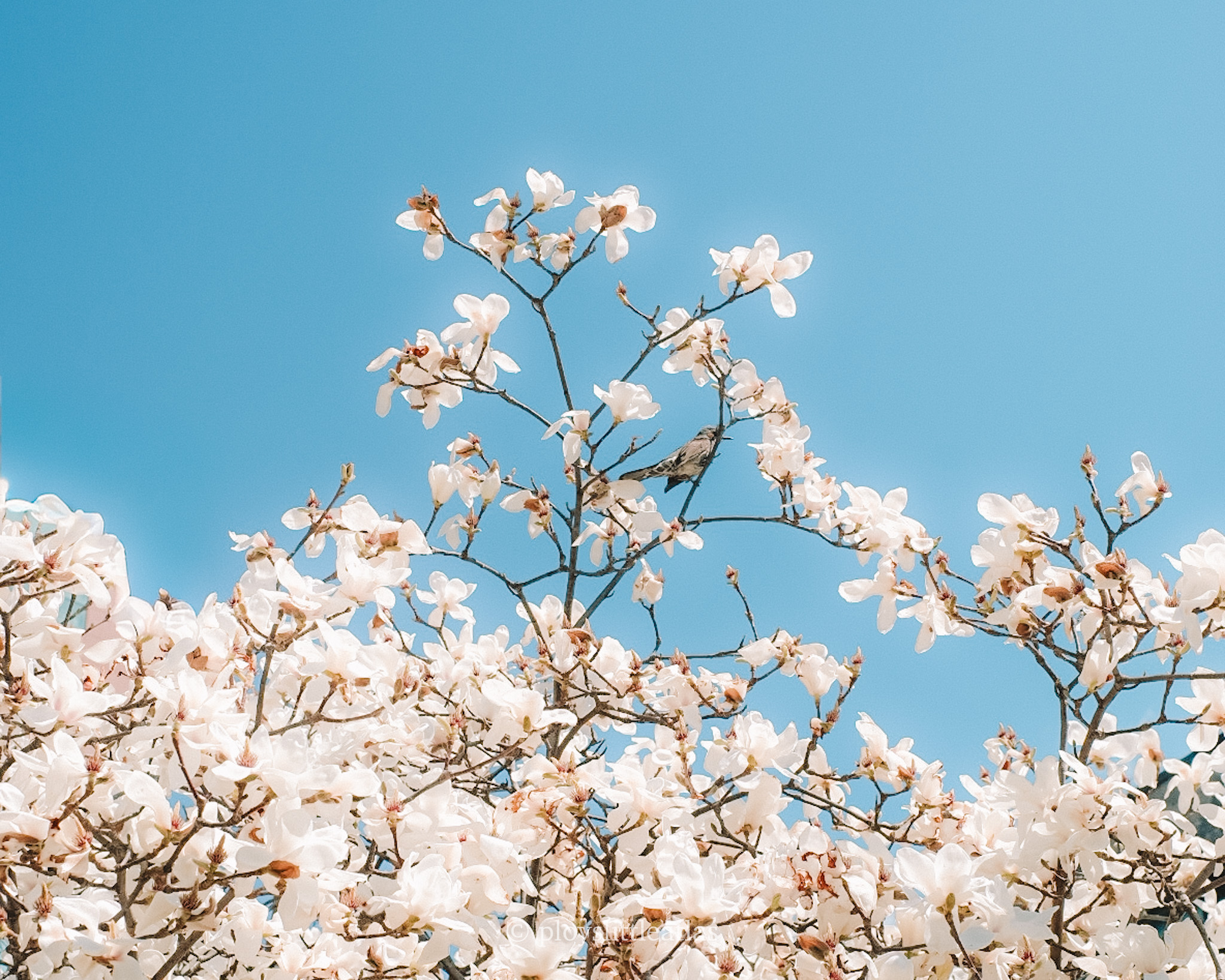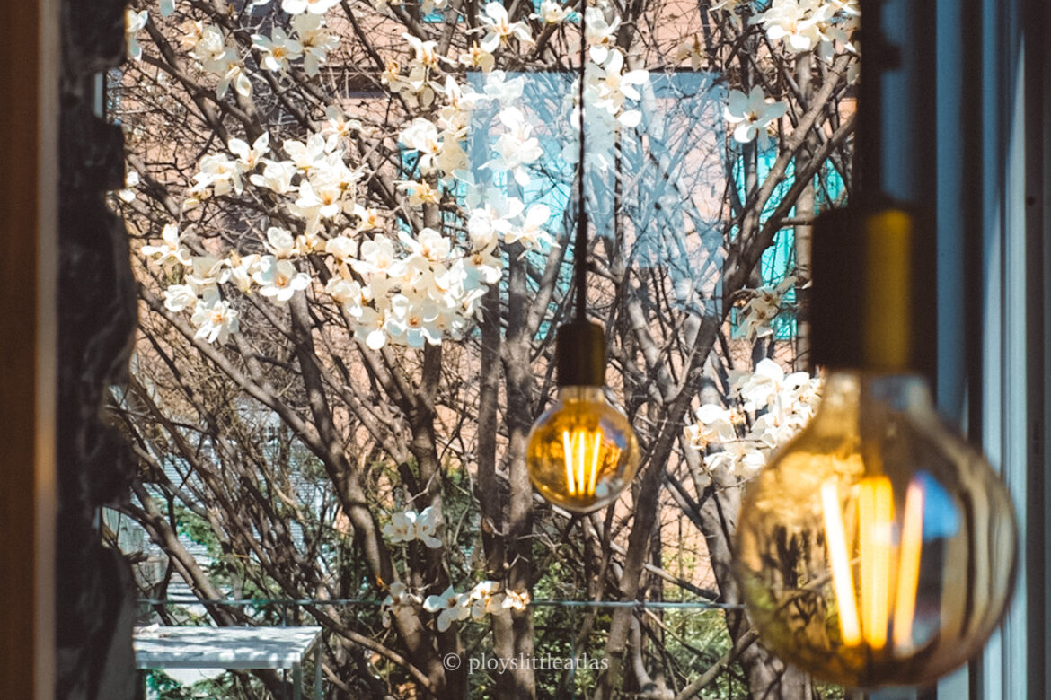 Remember that tree? It’s not just any tree—it’s a mature magnolia shrub, and when it blooms, it transforms Cilantro Coffee into a venue for pure flower magic.