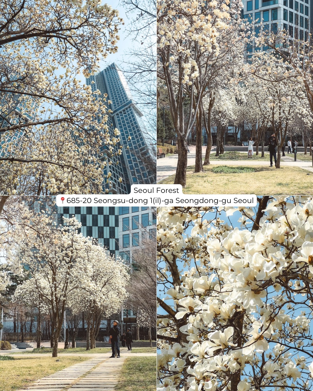 If you want to escape the urban concrete and lose yourself in nature, Seoul Forest is the place to be. This massive park is famous for its cherry blossom paths, but it also hides some of the most photogenic magnolia spots in the city!