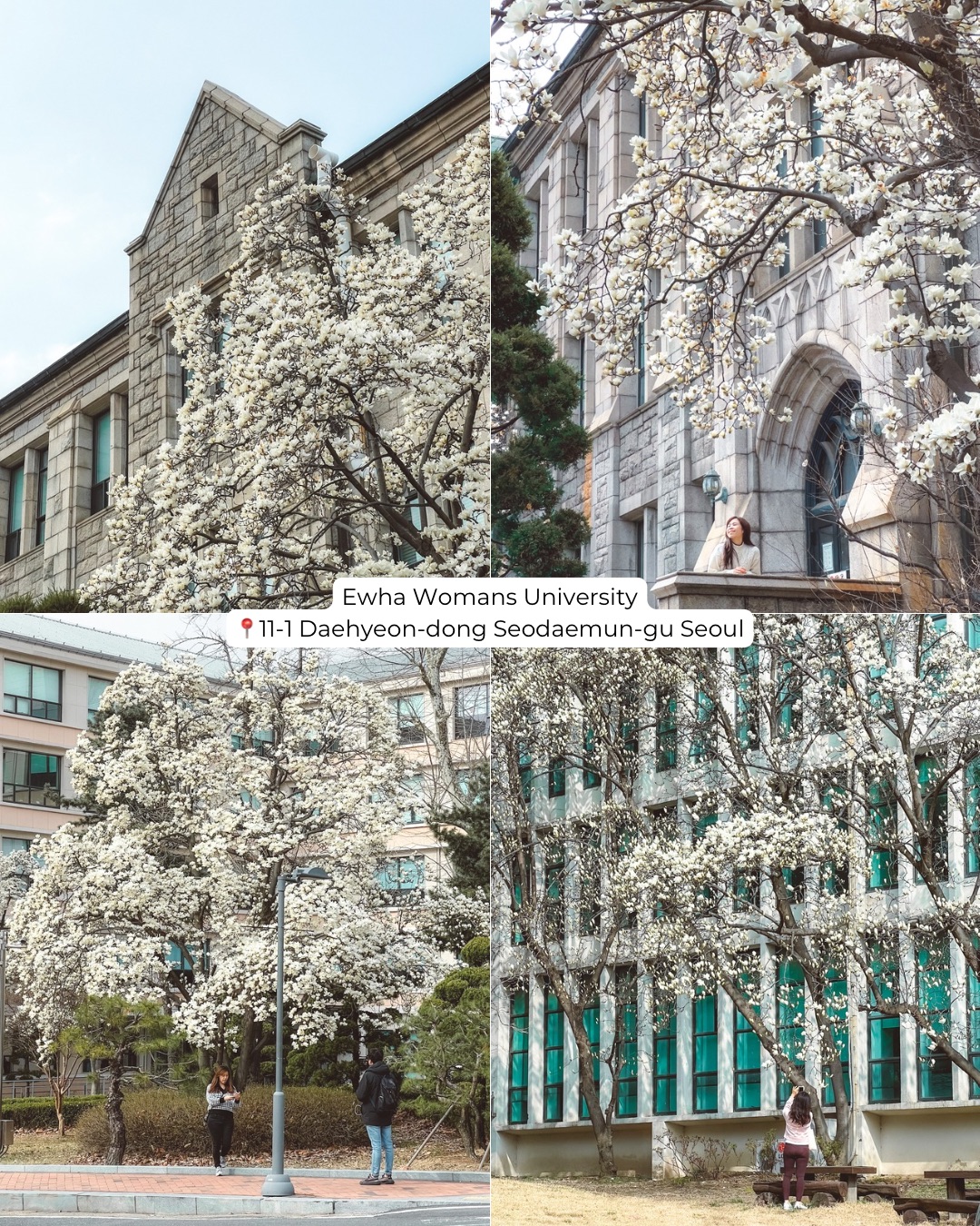 Ewha is stunning year-round, but it truly shines in the spring. Known for its gorgeous Gothic Revival architecture and sleek contemporary designs, the campus feels like a slice of Europe in the heart of Seoul. To my surprise, many of the thriving trees on these grounds are magnolias!