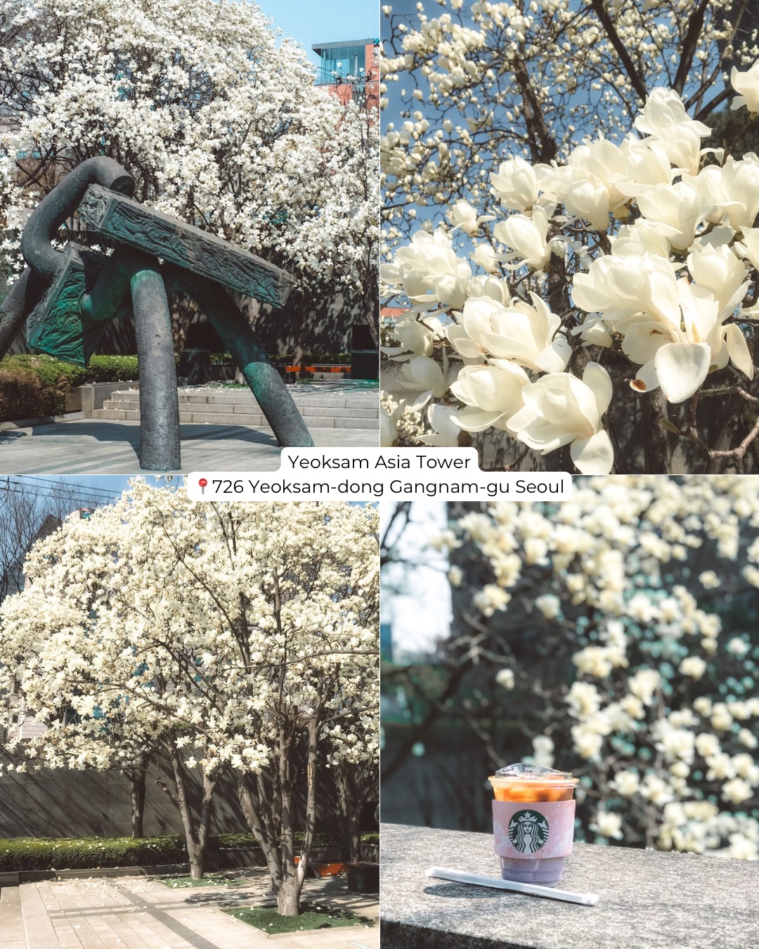 In the middle of the bustling, high-rise district of Gangnam, there is a magnolia gem hidden in plain sight. Located right near Yeoksam Station (Line 2) Exit 1, the yard of the Asia Tower hosts a majestic magnolia tree. When it’s in full bloom, it completely transforms the corporate atmosphere, lighting up the entire neighborhood with its beauty.