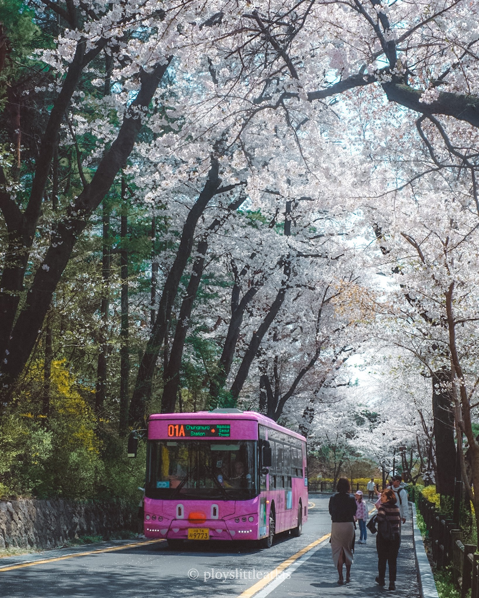 This is the big one. Namsan Namcheug Sunhwanro (남산남측순환로) is the southern route that links the Seoul Tower base area to the National Theater of Korea. This is where you’ll find long, dreamy stretches of cherry trees lining the road.