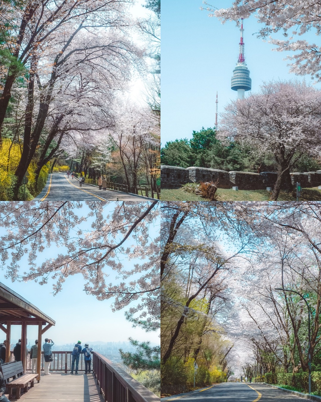 Among all the numerous trails around here, this is probably the only trail I will be willing to walk uphill for. Why? Because the reward is unreal. You get these stunning, cinematic views of Seoul Tower lurking behind dense clouds of trees and blossoms. The tower peeks through the pink and white petals like something out of a K-drama. Bring your camera (and your patience—the incline is real, but so worth it).