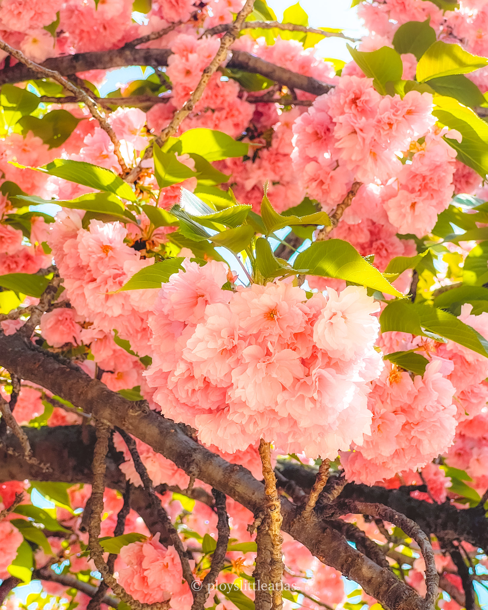 The real show happens when the pale pink petals are gone, the tourists have checked out, and the double blossoms open like fireworks that forgot to explode.