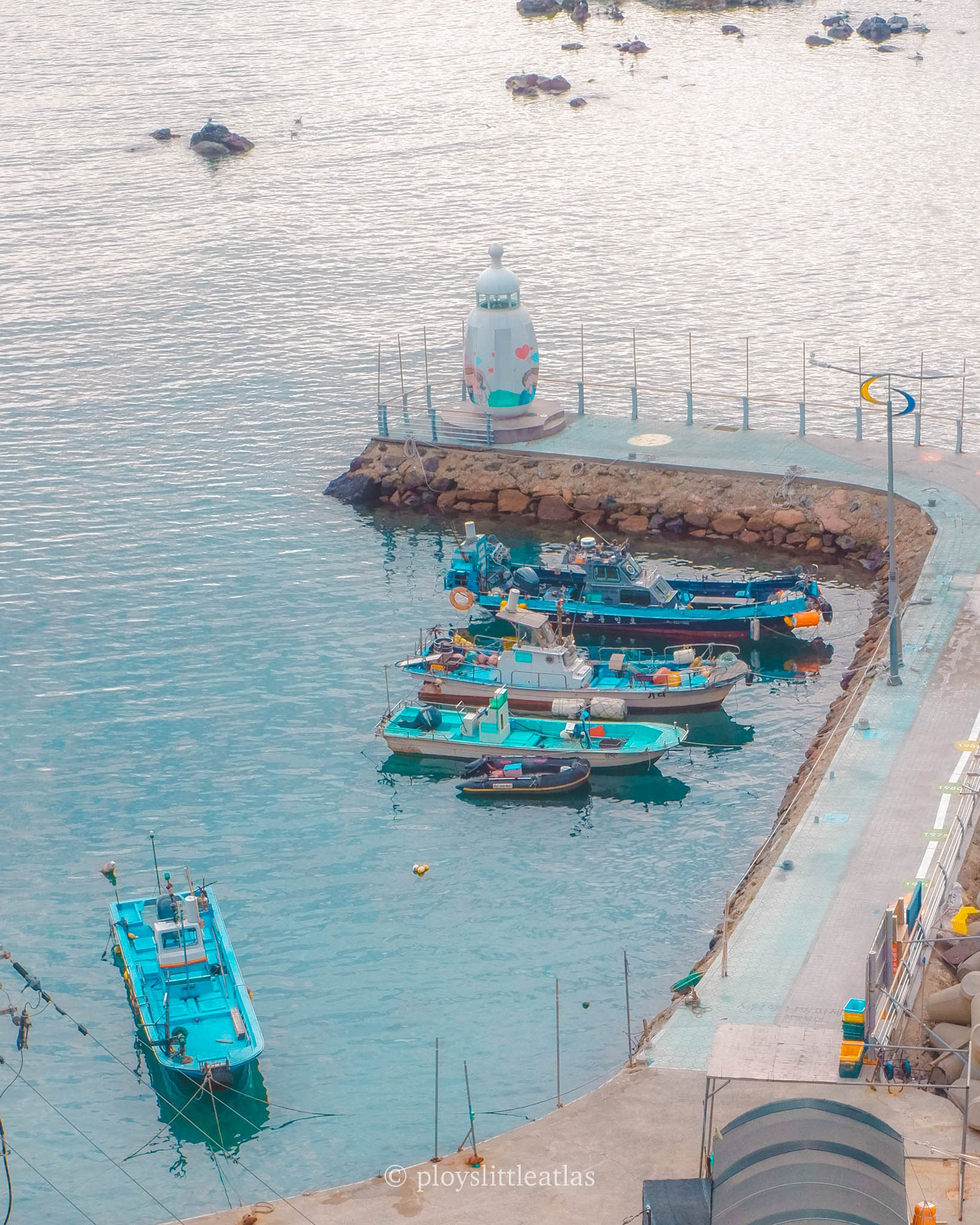 Keep an eye out for the Seoam Harbor South Breakwater Lighthouse. Its unique architectural design makes it look like a piece of modern art standing guard over the fishing boats.