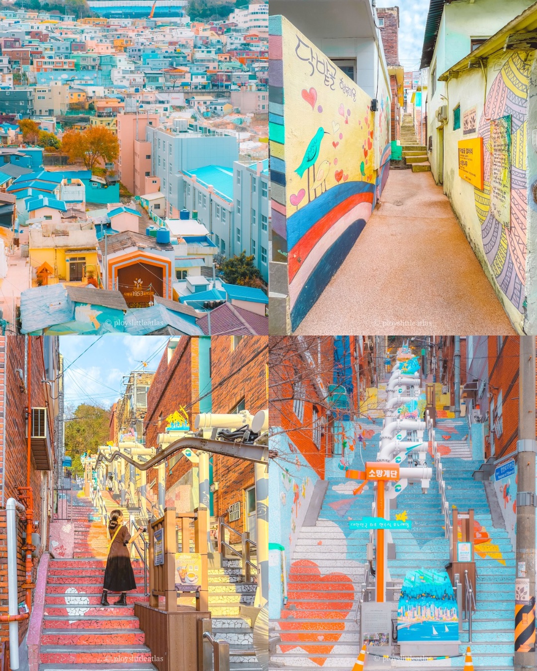 Less crowded than Gamcheon, Dakbatgol is famous for its “Stairway to Wishes” (192 steps!). It’s a quiet, artistic neighborhood perfect for a peaceful morning walk.