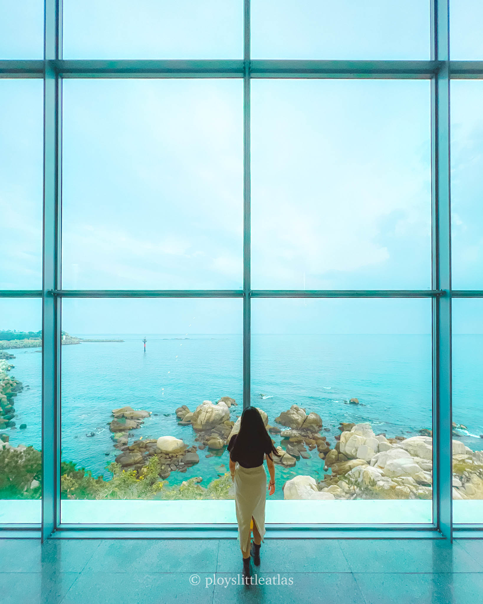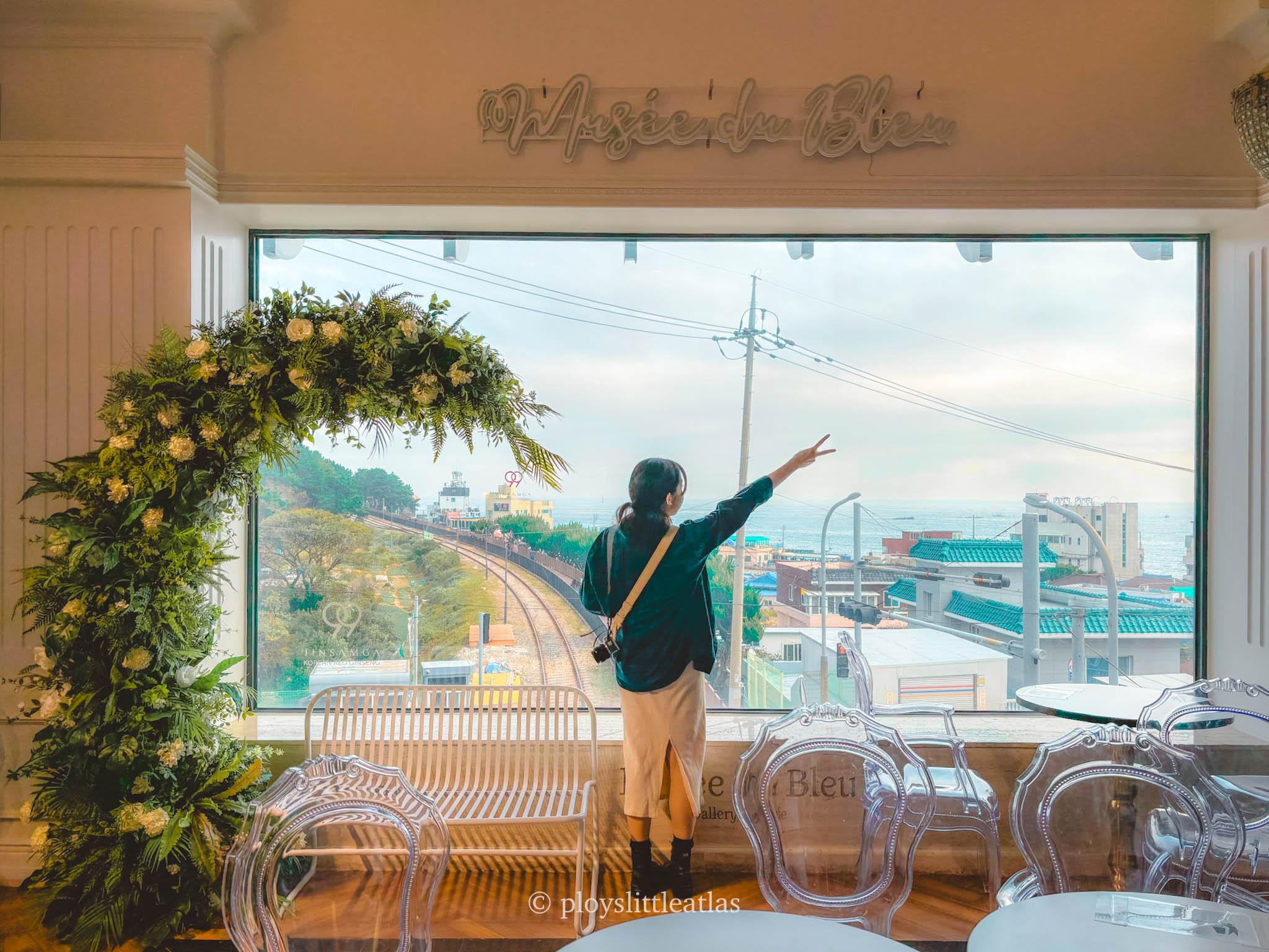 If you’re looking for a spot where fine art meets the crashing waves, Musée de Bleu is a must-visit. Located on the second floor of Cheongsapo Station (right along the Blue Line Park), this space functions as both a vibrant gallery and a chic cafe. It’s the perfect place to pause your coastal journey, grab an expertly crafted latte, and soak in the creative atmosphere while staring out at the ocean through their massive floor-to-ceiling windows.