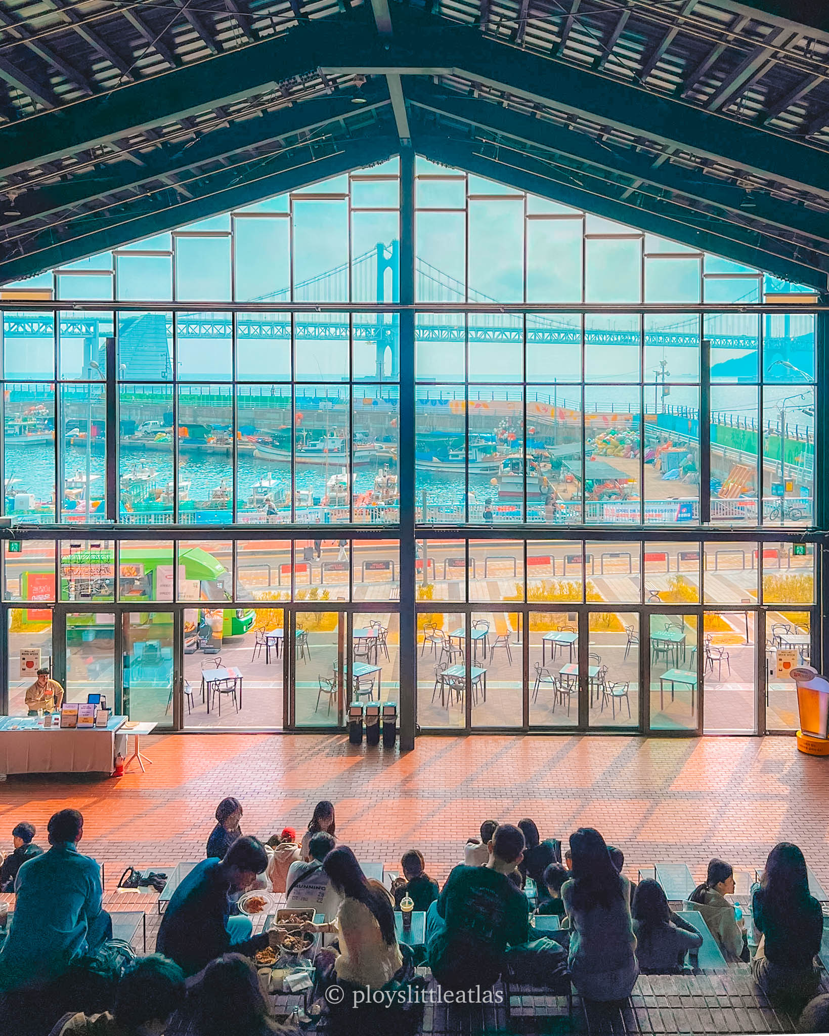 This is Busan’s newest “it” spot. Millac The Market is a trendy lifestyle complex filled with pop-up shops, eateries, and a giant tiered seating area where you can drink beer and look out at the harbor.