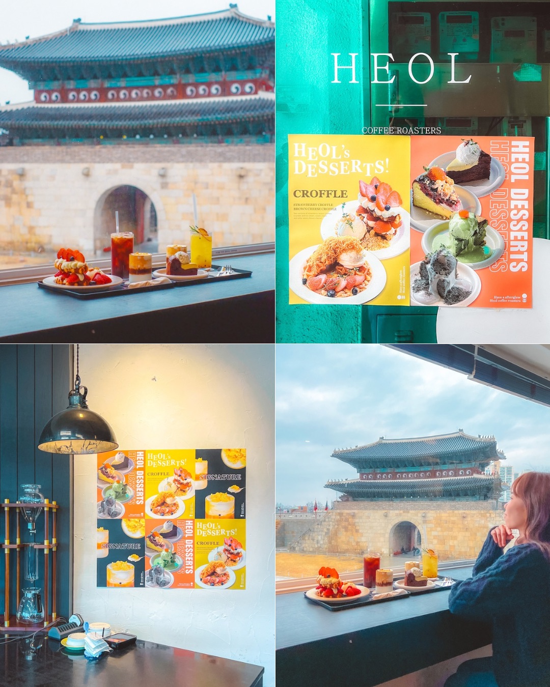 Located right across from the iconic Janganmun Gate, Hoel Coffee Roaster is famous for having one of the best “gate views” in the city. Large floor-to-ceiling windows allow you to sip on high-quality roasts while looking directly at the massive stone entrance to the fortress.