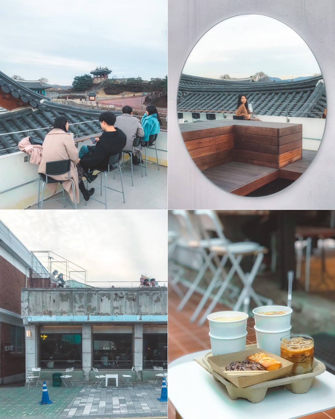 You can’t visit Suwon without exploring Haengnidan-gil, the trendy street filled with cafes. Jung Ji-young is a local legend here. The Hwahong branch is particularly special because it overlooks the Hwahongmun Gate and the Suwoncheon stream.