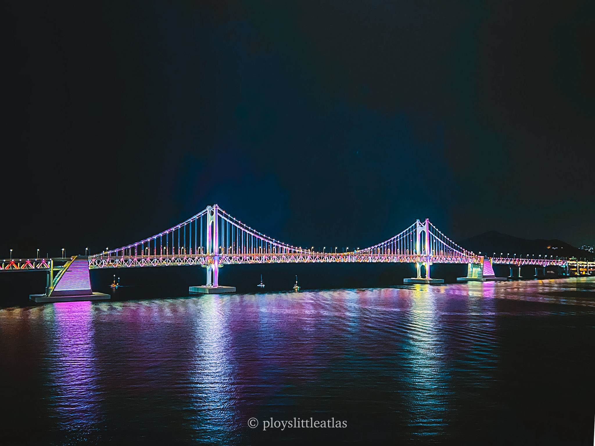 Gwangalli Beach is conveniently located closer to the city center. Much like Haeundae, it offers a variety of food and drink options, albeit in slightly smaller numbers. What truly sets Gwangalli apart is the spectacular backdrop across the water – the iconic Gwangandaegyo, also known as the Diamond Bridge. When night falls, this waterfront area transforms into a mesmerizing spectacle as thousands of colorful LEDs light up the suspension bridge, creating the most charming views that can be enjoyed from any spot on Gwangalli Beach. This, in turn, has inspired many, including myself, to consider staying in one of the beachfront properties here.